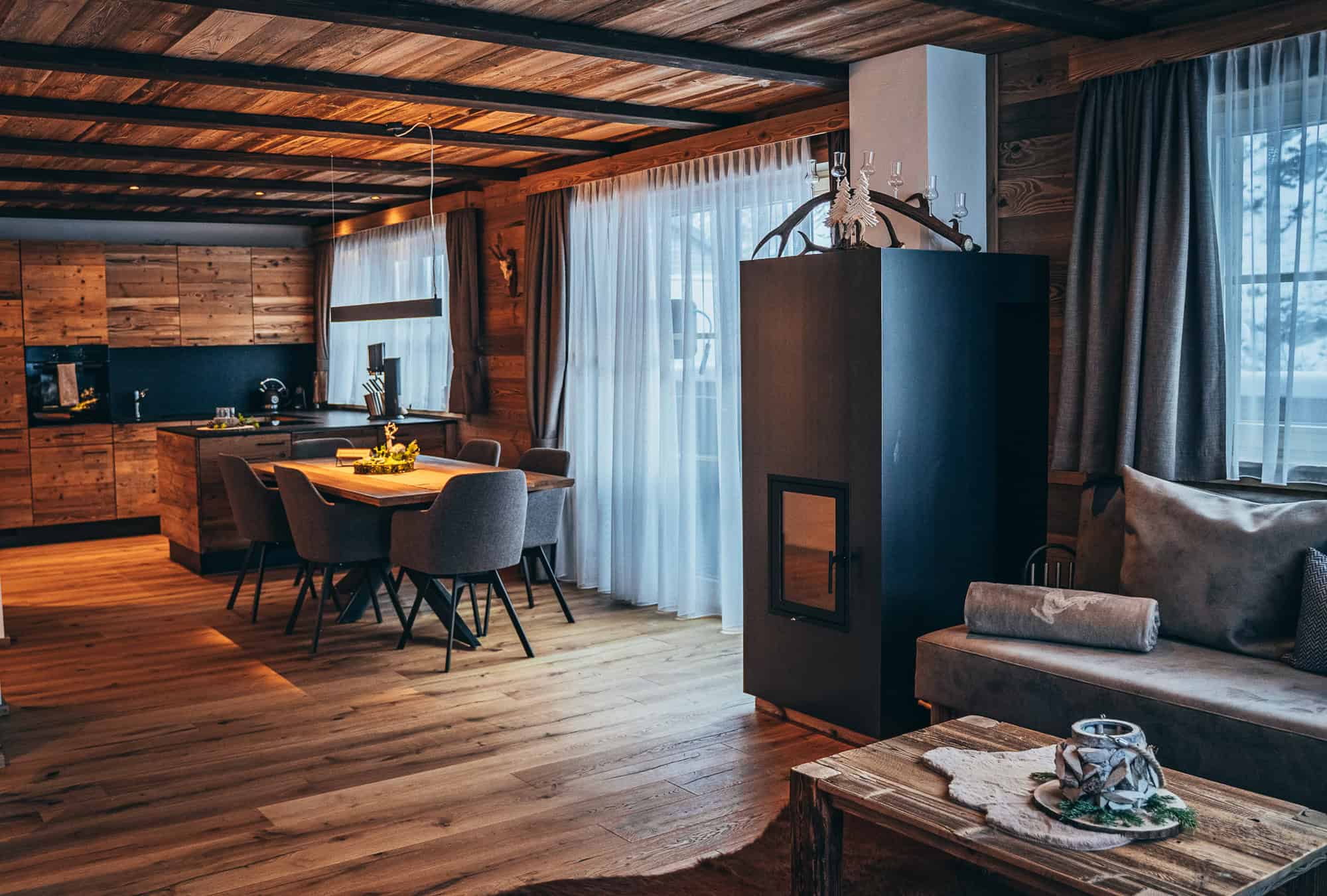 Großzügige Lodges – Johann’s Lodge und Edburg’s Lodge – gehören ebenfalls zum «Goldener Hirsch» Chalets Komplex in der Österreicher Region Tirol.