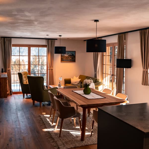 Wunderschönen Familiensuiten – „Scharnitz“, „Tirol“, „Isar“, „Leutasch“ sowie die „Hirsch“ und „Reh“ Suite – bieten auf 75 m² zwei Schlafzimmer und viel Raum zum Entspannen. Die neuen Suiten „Gams“ und „Steinbock“ mit jeweils 50 m² sind ideal für Paare. Alle Suiten sind Teil des exklusiven Chalet-Ensembles «Goldener Hirsch» – nur einen Steinwurf von der deutschen Grenze entfernt.
