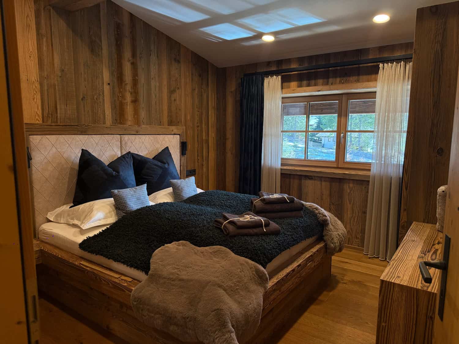 Das Chalet verfügt über drei Schlafzimmer mit Doppelbetten sowie zusätzliche Schlafmöglichkeiten für bis zu vier weitere Gäste und bietet damit Platz für insgesamt bis zu zehn Personen. Zur exklusiven Ausstattung zählen eine private Fasssauna, ein Hotpot mit Whirlpool-Funktion, ein großzügiger Gartenbereich, ein liebevoll gestalteter Indoor-Spielraum für Kinder sowie ein eigener Outdoor-Spielplatz.